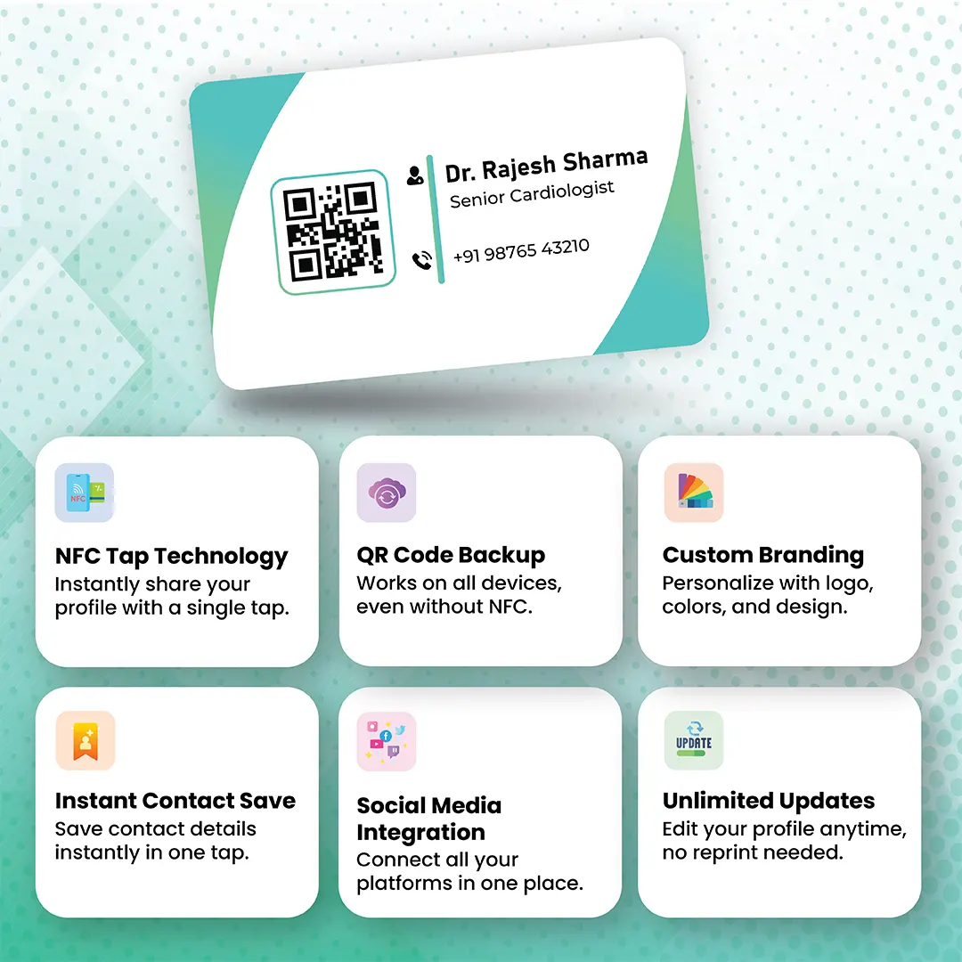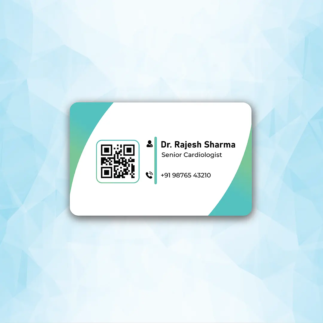 No app is required, making it easy for patients to connect with you on both Android and iPhone devices. Whether you are in a clinic, hospital, or medical camp, this NFC business card ensures quick and smooth communication.